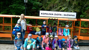 31 maja 2017r. klasa pierwsza po raz pierwszy wyjechała na swoją wymarzoną wycieczkę po… złoto. Spotkaliśmy się przed szkołą o godz. 7.15, pożegnaliśmy rodziców i wyruszyliśmy do Złotego Stoku, by zobaczyć potęgę złota i ogrom wysiłku, jaki był potrzebny do jego wydobycia, a także w celu przeżycia przygody i zdobycia wszelkich dóbr Złotego Stoku – złota, świeżego powietrza, przygody w kopalni, lęku w labiryncie strachu. Mieliśmy okazję podziwiać tam ponure korytarze, w których już średniowieczni górnicy wydobywali złoto. Spotkaliśmy też „alchemika”, który próbował wyprodukować złoto metodą przeróżnych reakcji. Z kopalni wyjechaliśmy kolejką. Zwiedziliśmy też muzeum minerałów i mennicę. Następnie czekało nas płukanie złota w strumieniu oraz szukanie diamentów. Na koniec poznaliśmy średniowieczny Park Techniki. Miło było przeżyć tak wspaniałą i pełną wrażeń wycieczkę.