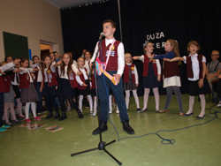 Uczniowie naszej szkoły w dniu 24.09.2016 wzięli udział w spotkaniu z Esther i jej przyjaciółką Skarpetką – Deutsch mit der Socke. Spotkanie to odbyło się we Wrocławiu. Dzieci naszej szkoły chętnie brały udział w zabawach proponowanych przez główną bohaterkę jak i napisały krótki list do Skarpetki. Na zakończenie spotkania wszyscy uczestnicy otrzymali „ Freudschaftbuch” – książeczkę przyjaciół oraz otrzymali autografy od Esther. Wyjazd oraz praca z filmami miała i ma na celu wesprzeć naszych uczniów w nauce języka niemieckiego poprzez zachęcania ich do słuchania, powtarzania i wspólnego działania.